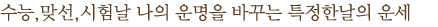 »çÁÖ ¼Ó ¿î¸íÀ» ¹Ù²Ü¸¸ÇÑ~ ±×¸®°í ³ªÀÇ ¿î¼¼¿¡ ºüÁ®¼­´Â ¾ÈµÉ Ưº°ÇÑ ³¯ÀÇ ÀÚ½ÅÀÇ ¿î¼¼¸¦ ¹Ì¸® ¤¾îº¸¼¼¿ä.